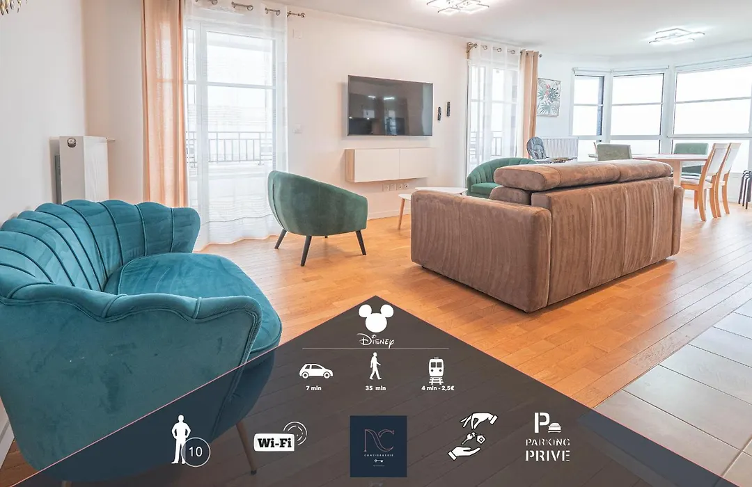 Situé à moins de 2 km du Parc Disneyland, cet appartement Disneyland-Paris 10 Personnes, Wifi, 2 Parkings de 77 m^2 dispose d'un parking privé gratuit pour ceux qui voyagent en voiture. Cette facilité assure une solution pratique pour garer les véhicules des visiteurs pendant leur séjour. Profitez d'une promenade dans La Vallée Village, à une distance de marche de l'appartement.